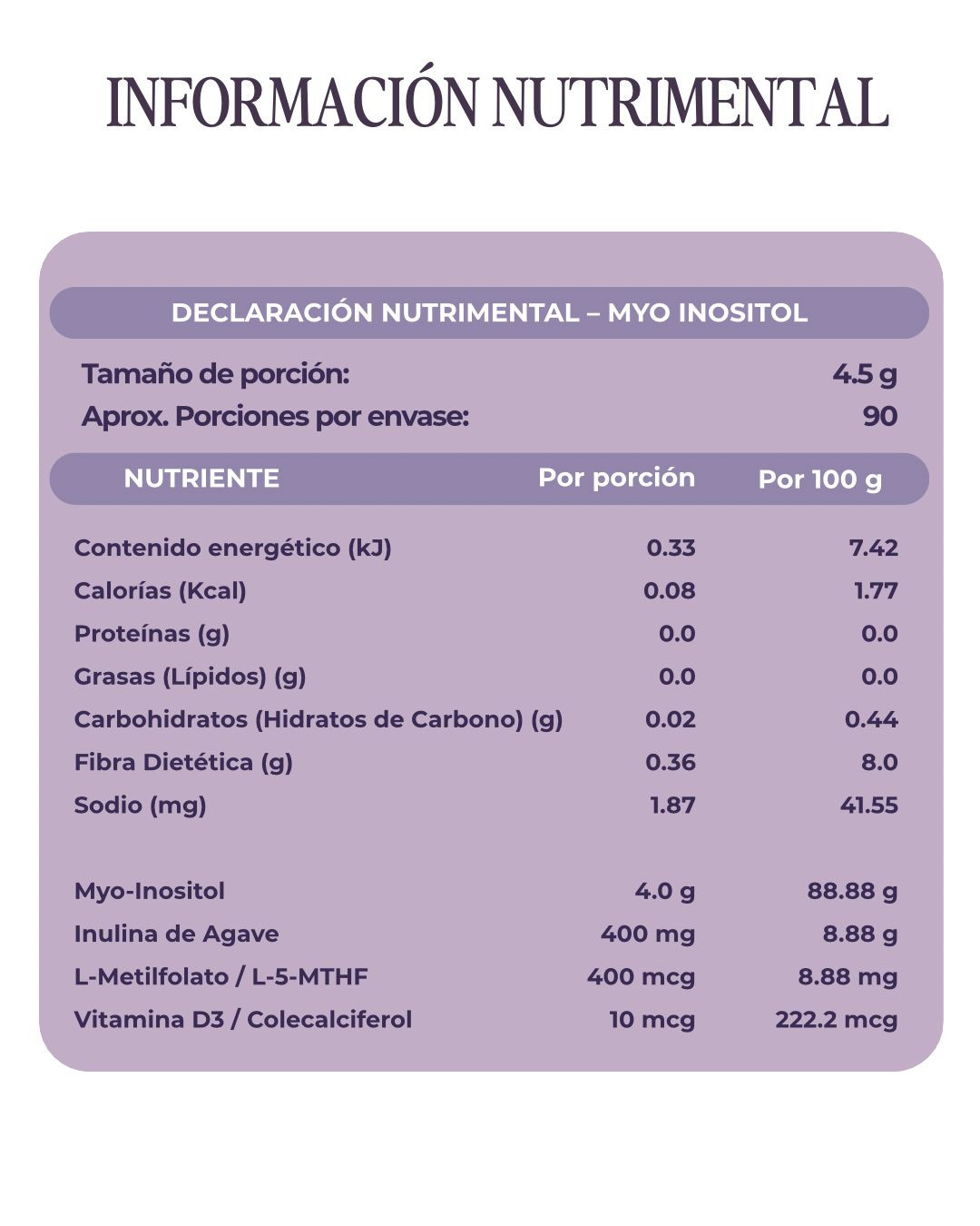 Ingredientes: Myo Inositol, Vitamina D3 (Colecalciferol), Inulina de Agave, L-Metilfolato (L-5-MTHF).